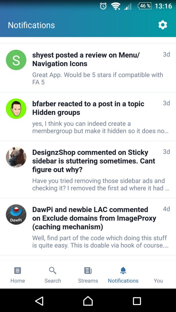 Programa palaiko tik forumo aplikaciją, kitos puslapio dalys kaip naujienos, galerija, blogas, failai yra pasiekiama rodant mobilios versijos vaizdą. Tai irgi nėra blogai, tačiau su laiku IPS padarys ir kitų aplikacijų native palaikymą. Pradžiai forumo palaikymo pilnai užtenka, vis viena gi ten ir vyksta pagrindinis veiksmas. Nereikia norėti iš karto, kad tokio mąsto aplikaciją nuo pirmosios versijos viską idealiai palaikytų.